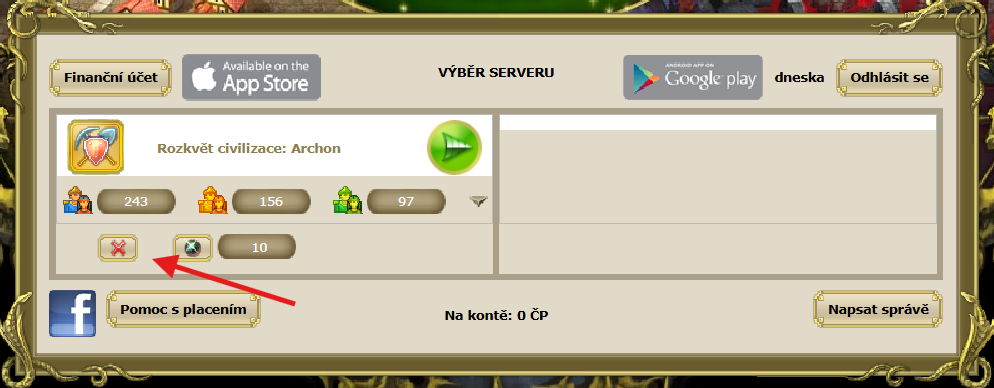2.Nebo, můžete odstranit postavu z aktuálního serveru a začít znovu hrát na tomto serveru novou rasou. V okně výběru serveru můžete dát postavu na smazaní, které, jestli neodvoláte smazání během této doby, proběhne za 7 dní a nocí. Potom můžete zaregistrovat novou postavu na tomto serveru.